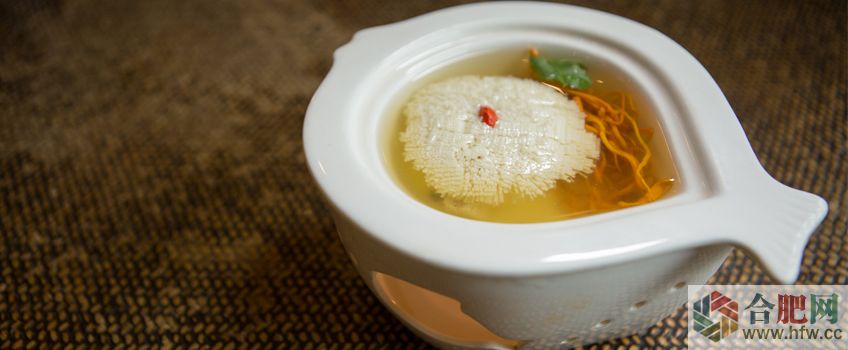 菊花豆腐盅色香味俱全,該菜以菊花狀的豆腐絲,配以菊花精美搭配,成菜色澤淡黃,留有菊花的清香,其中豆腐絲色亮酥軟,浸入菊花清香,口味獨特。