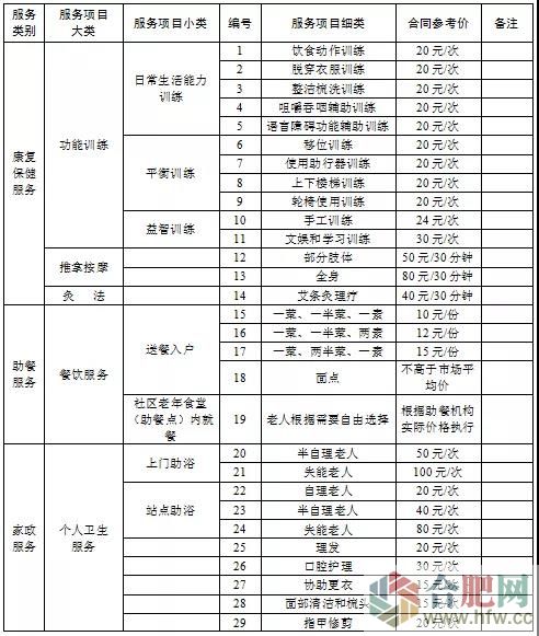 2.合肥市政府購買居家養(yǎng)老服務(wù)項(xiàng)目清單