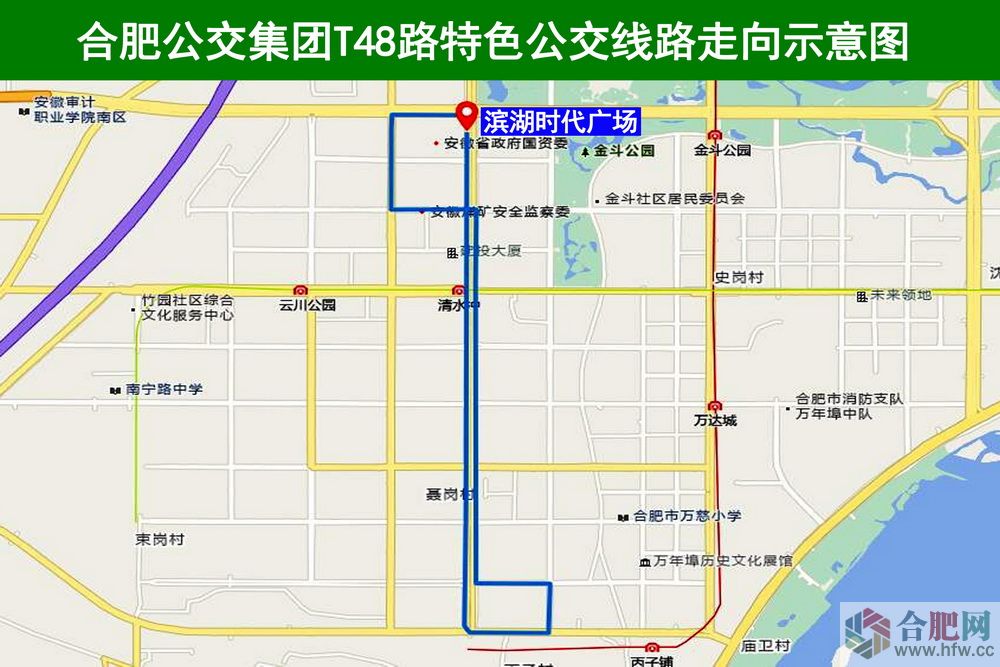 T48路特色公交服務時間:濱湖時代廣場站7:00~9:00,17:30~19:30。